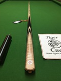 A genuine Canadian maple or North American Mountain Ash shafted cue initially hand spliced with genbuine African ebony. These are two piece 1/2 jointed cues with a single front facing Tri splice of American Holly and additional African Ebony.
