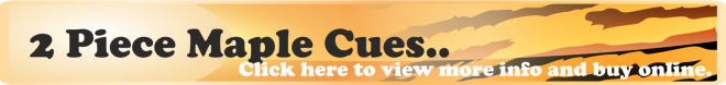 All in the range are hand made genuine Canadian maple and African ebony cues, fitted with Quick Release Brass joints placed at around 15" from the base. We have cues built to be both Pool cues with tips around 8.5mm is size, and also snooker cues with tip sizes ranging between 9mm and 10mm. All the cues include a 6" mini butt extention in with the price listed below.