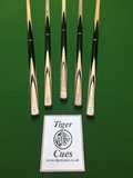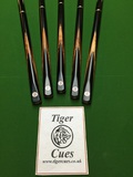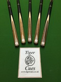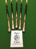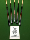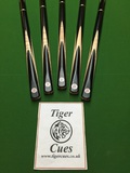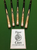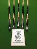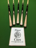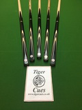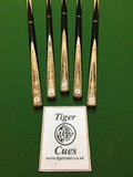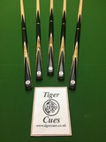 All in the range are genuine North American Mountain Ash and African Ebony, fitted with 'Quick Release' or 'Vacuum Lock' Brass joints placed at around 15" from the base. We have cues built to be both Pool cues starting with tips around 8mm is size up to 9mm and also snooker cues with tip sizes ranging between 9mm and 10mm. All the cues include a 6" mini butt extention in with the price listed below.